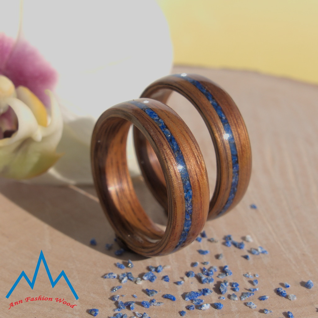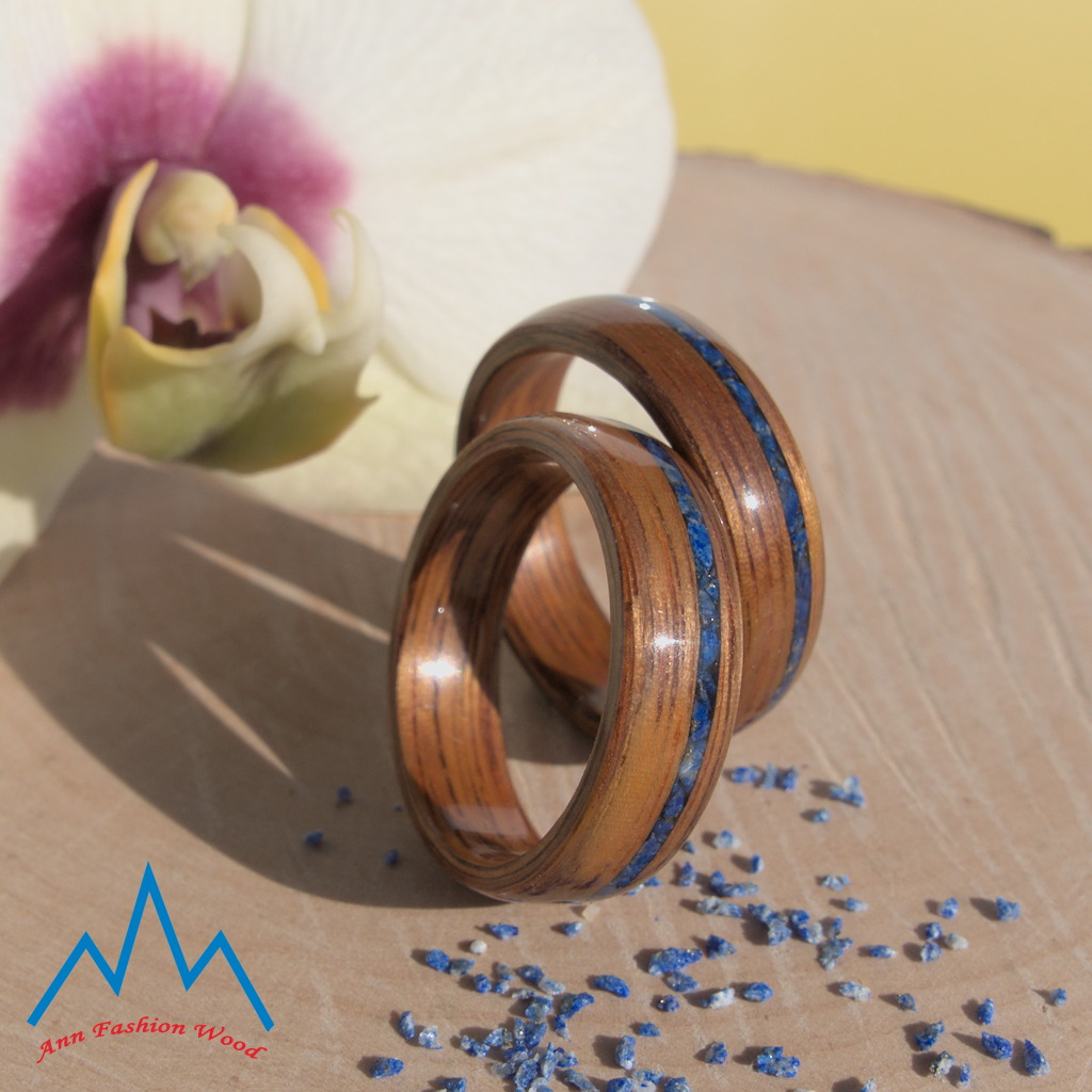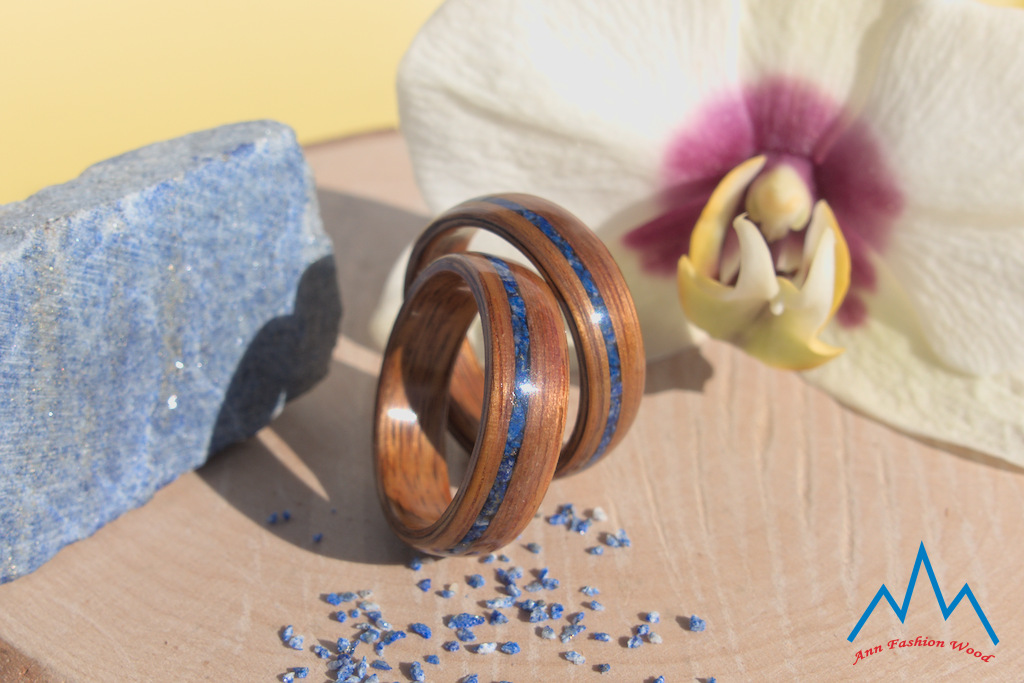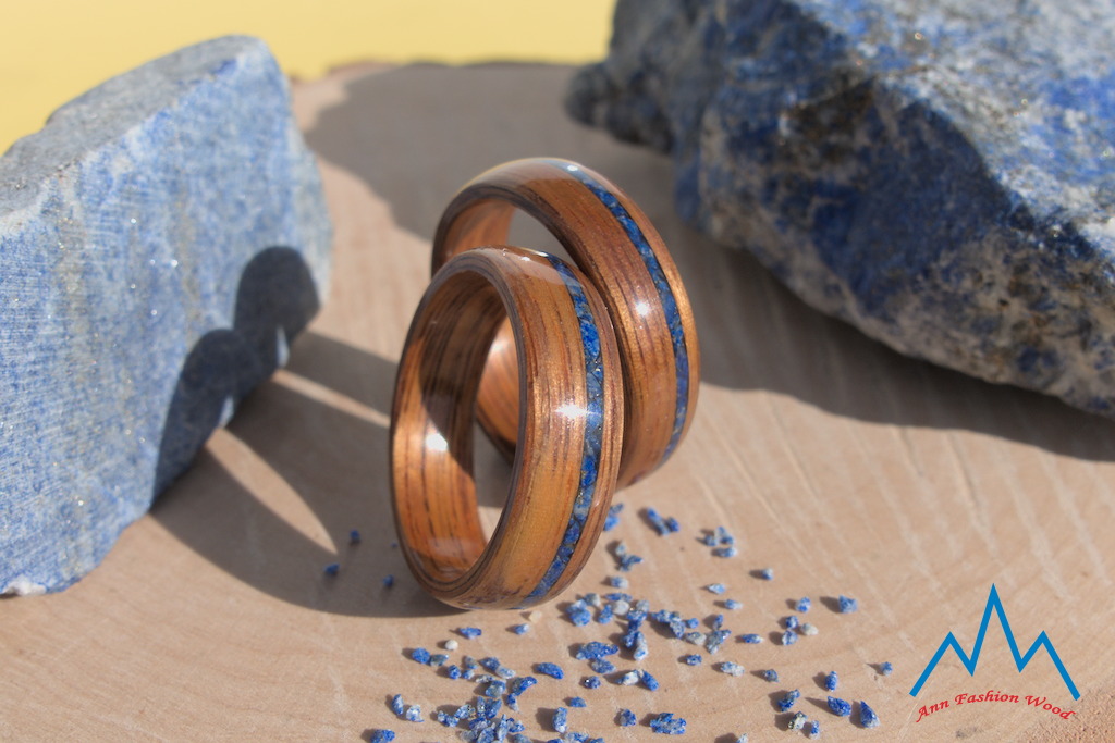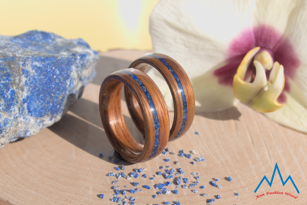 Drewniane ślubne obrączki Lapis Lazuli doskonale prezentują się na paluszku. Nie obawiaj się nasze obrączki drewniane ślubne zachwycą nie tylko bliską osobę, ale również wzbudzą zachwyt otoczenia.