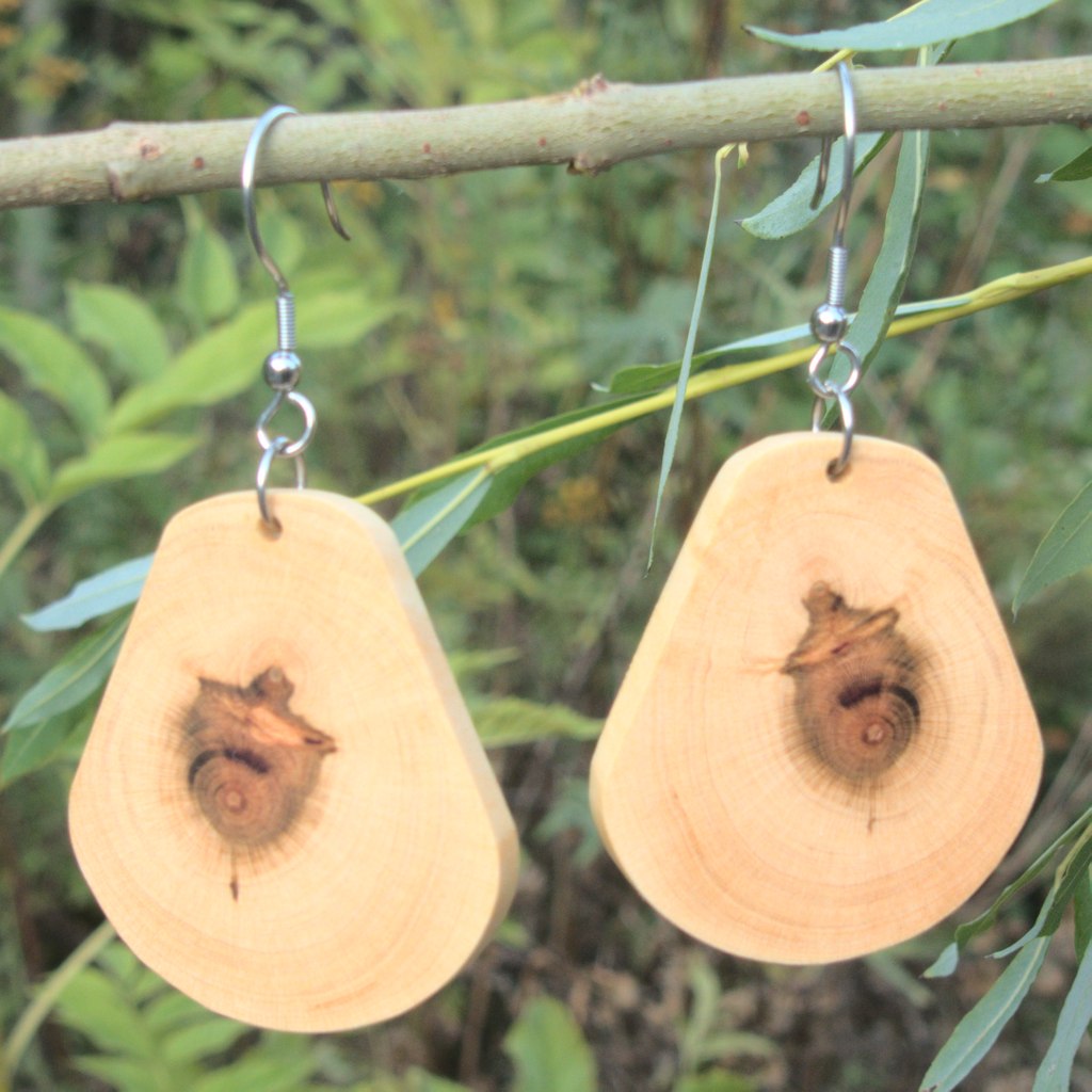 Te śliczne drewniane kolczyki powstały z plastra drewna śliwy. Drewno, którego użyłam przy tworzeniu kolczyków drewnianych pochodzi ze starych, wyeksploatowanych i modernizowanych sadów. Kolczyki wykonałam własnoręcznie w mojej pracowni z wyselekcjonowanego, długo suszonego drewna śliwy.