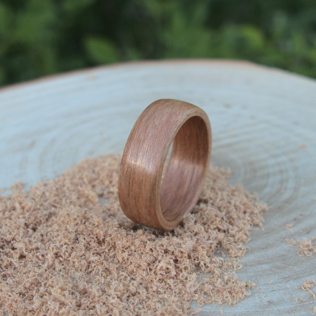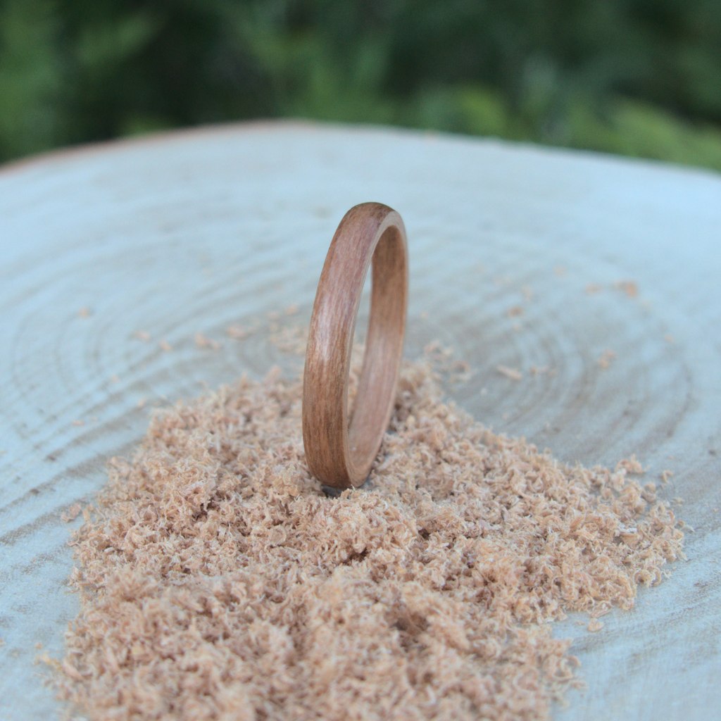 Obrączka drewniana czereśnia amerykańska zarówno doskonale prezentuje się na paluszku jak również jest bardzo wygodna w noszeniu. Każdą obrączkę wykonuję w mojej pracowni, dlatego mogę dla was nie tylko wykonać obrączkę w dowolnym rozmiarze i szerokości, ale również zrealizować wasze nietypowe zlecenia i oryginalne pomysły. Razem możemy stworzyć coś niepowtarzalnego i ukazać fascynujące kolory natury.