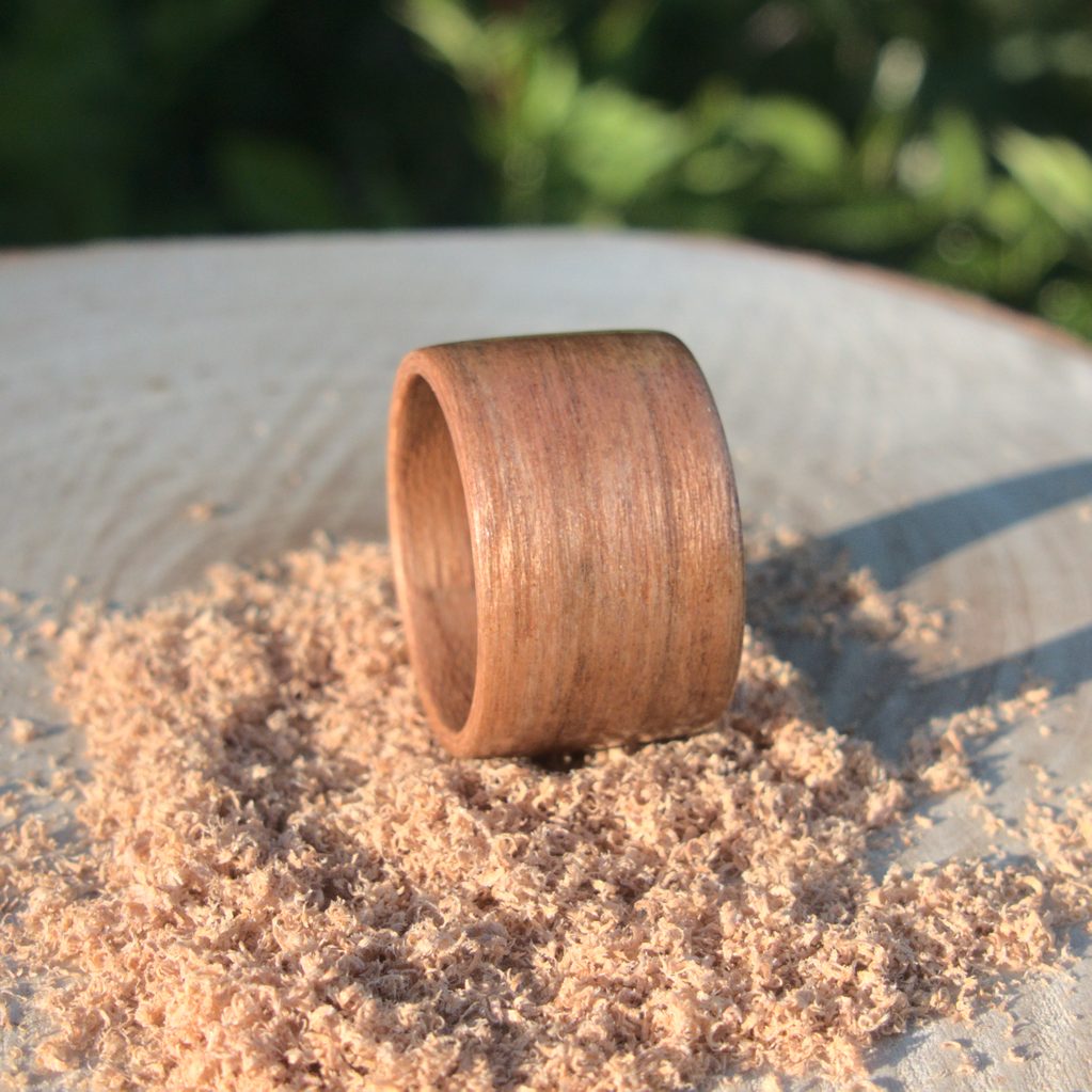 Obrączkę wykonałam z naturalnego drewna czereśni amerykańskiej, które jak każde drewno ma swoje ograniczenia. Dlatego, aby przez wiele lat cieszyła wasze oczy i budziła podziw i zachwyt otoczenia, należy: unikać detergentów, środków chemicznych, materiałów ściernych i innych twardych materiałów, które mogą zarysować bądź uszkodzić powierzchnię. Tutaj możesz poczytać o szczegółowych zaleceniach użytkowania i konserwacji biżuterii.